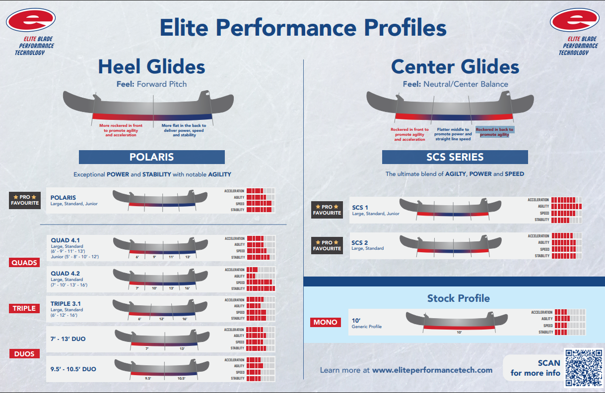 Jokainen pelaaja on yksilö ja kaikille ei käy sama muotoilu. Muotoilua valittaessa tulee huomioida pelaajan taitotaso sekä terän mitta. Elite tarjoaa jokaiselle pelaajalle sopivan profiloinnin.